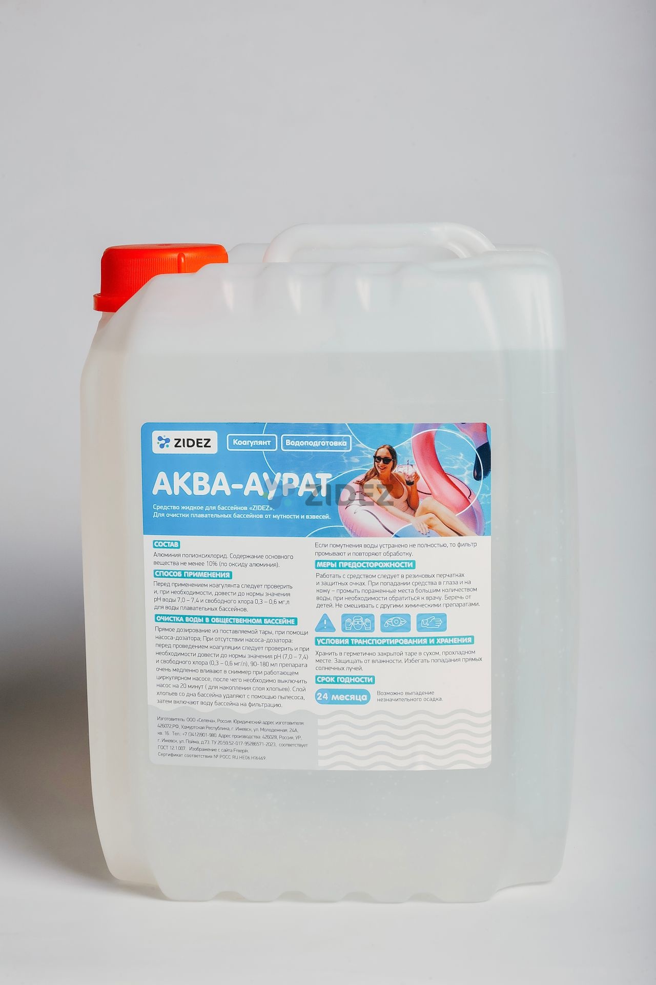 Средство жидкое ZIDEZ Аква-Аурат для очистки плавательных бассейнов от мутности и взвесей.