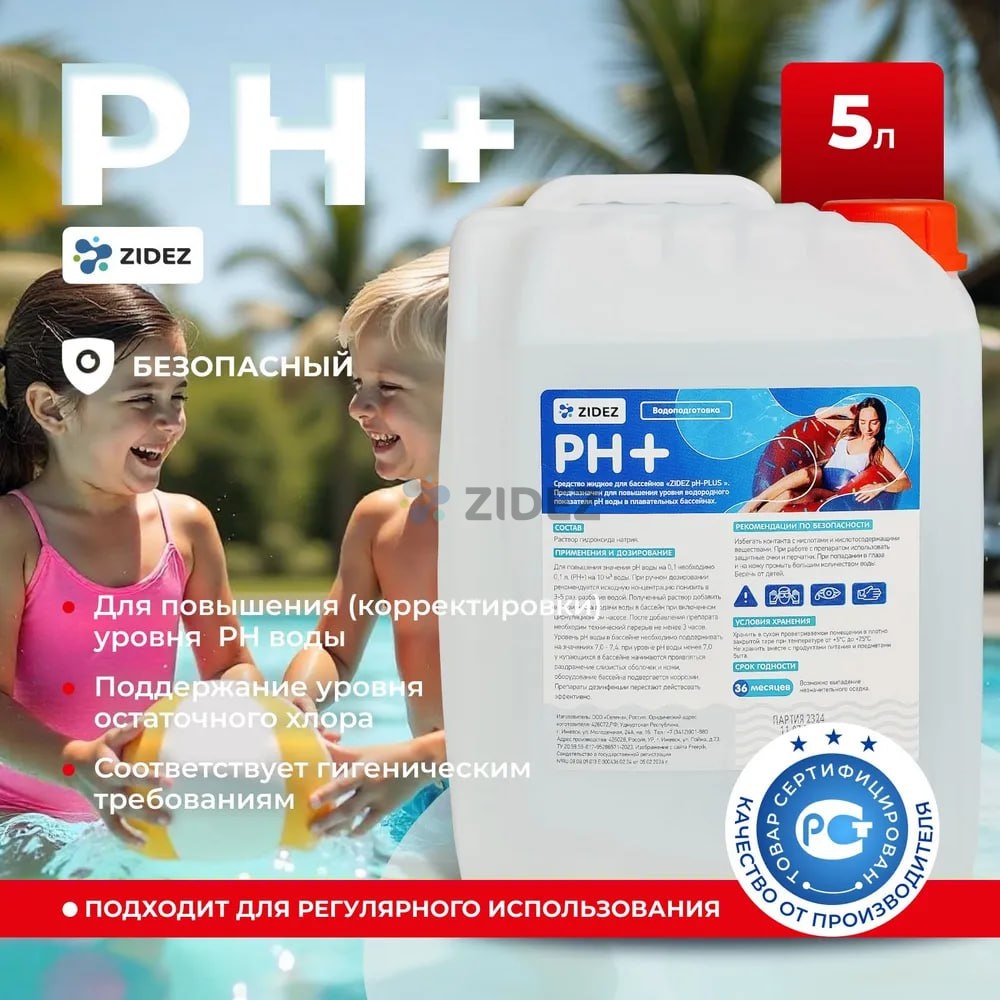 Средство жидкое для бассейнов ZIDEZ pH-PLUS.